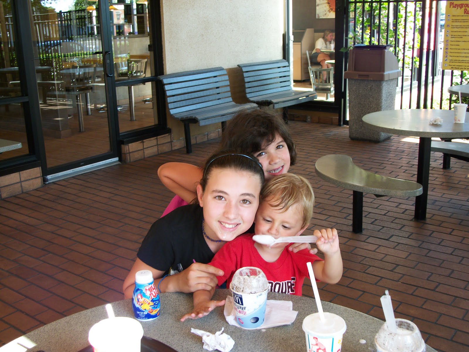 Oh my, the end to a perfect day!!! A trip to McDonalds with Avery's "big sisters" Becca and Brianna.